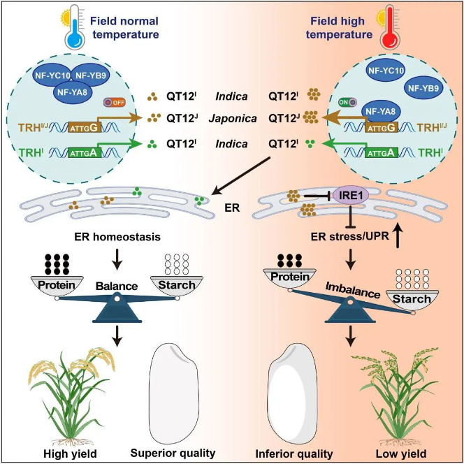 近20年来,全球气候变化导致极端高温事件频发,严重威胁世界农业安全。华中农业大学、湖北洪山实验室李一博教授团队突破传统依赖人工模拟高温的局限,首创了作物灌浆期耐自然高温基因挖掘范式。经过十余年大规模筛选,获得稳定耐热种质并克隆了首个稻米品质耐热基因QT12,阐明了其通过调控胚乳内质网稳态协同维持产量与品质的分子机制,攻克“高温无好米、高产优质难兼顾”的育种难题。在长江流域三省高温条件下,该技术使主栽水稻产量最高挽回40%的损失,且品质稳定达到国标二级米标准,已与6家龙头种业企业签订总额6000万元的技术转化合同,为应对气候变化、保障粮食安全提供了关键技术支撑。该成果已申授发明专利7项,在国际顶级期刊Cell上发表研究长文。该成果获Science、Nature Food、Cell Reports、Molecular Plant等顶尖期刊的专文评价,并入选Science 2025年度十大科学突破、2025年湖北省“61020”重大基础研究成果首位、2025年湖北十大科技事件。