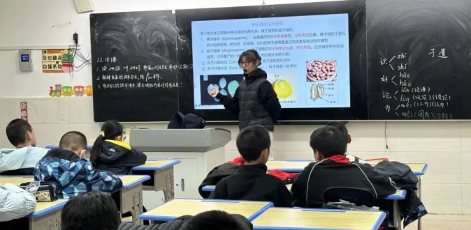 刘辛迪老师则补充了分类知识:“裸子植物的种子是裸露的,比如松柏籽;被子植物的种子藏在果实里,像苹果籽、西瓜籽,是植物界最繁盛的一类。”图文结合让抽象知识直观易懂。