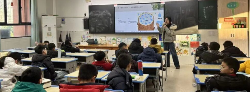 课上,孩子们格外专注,纷纷举手分享校园里的发现,课程结束时仍围在老师身边:“原来身边的树都藏着越冬妙招!” 这场科普课既有知识厚度,又有诗意温度,让孩子们读懂草木智慧,更懂得尊重生命、守护自然。