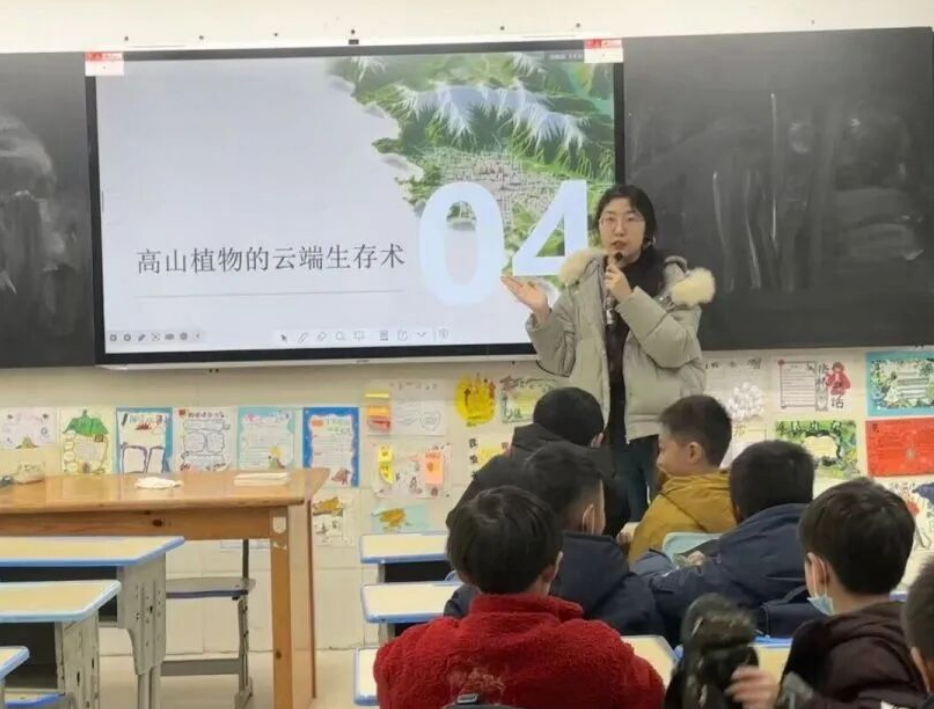 刘辛迪更引导孩子们回望校园:“操场边的香樟,叶片蜡质层锁水防冻,恰似寒带植物的‘铠甲’;花坛里的麦冬,叶片细密保温,堪比高山植物的‘保暖毛衣’。”