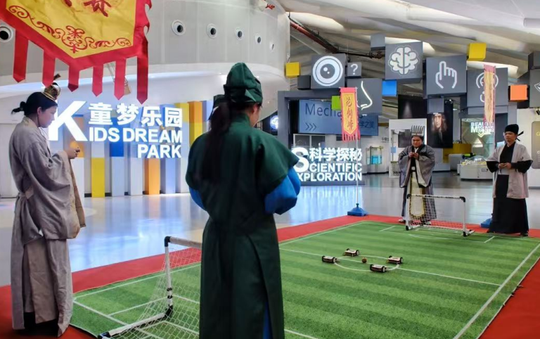 小侠客们将手持“英雄帖”,穿梭于“论剑峰”的武侠元宇宙竞技场,体验平衡力挑战、机甲足球赛等科普游戏;流连于“非遗阁”的匠心年货集市,亲手尝试剪纸、竹编、掐丝珐琅等传统技艺;探秘于“天工坊”的机甲铸造工场,组装声控机器人、手摇舞龙等科技装置;还可以在“乐游原”欣赏机甲秀、科学秀,观看科学家精神电影。通过完成各点位的集章任务,甚至寻找隐藏的“隐世高人”,小侠客们可根据集章数量兑换实物奖励,享受一场知识与乐趣并重的闯关之旅。