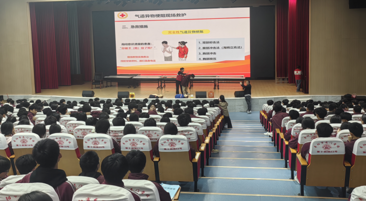 在全国中小学生安全教育日即将到来之际,本着切实提升校园师生应急自救互救能力,让科学的急救知识扎根校园的宗旨,3月26日,枣阳市生命安全体验中心科普基地的专业教官团队,走进枣阳市龙门学校,为高中部全体师生开展了一场针对性极强的气道异物梗阻与心肺复苏操作技能专项科普培训。
