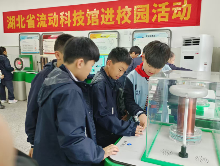 4月2日,十堰市汉江实验学校四年级210名学生有序参与巡展活动。活动现场,同学们在科技志愿者的引导下,满怀好奇地在各类展项前驻足探索、踊跃互动,从神奇的电磁现象到精妙的力学原理,从趣味的数学模型到直观的光学实验,每一件展品都让同学们目不暇接、赞叹不已。大家围在一起交流讨论、动手操作,在轻松愉悦的氛围中收获科学知识、探寻科学奥秘,一颗颗热爱科学、勇于探索的种子在心中悄然种下,进一步激发了学生的科学探究欲和创新思维。