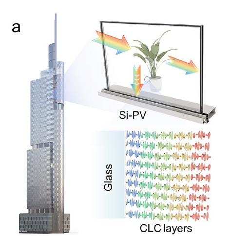 基于CLC层镀膜建筑玻璃圆偏振分光的概念图(图片来源:参考文献[1])
