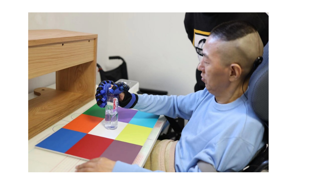 图2NEO帮助高位截瘫患者在家实现脑控抓握/喝水