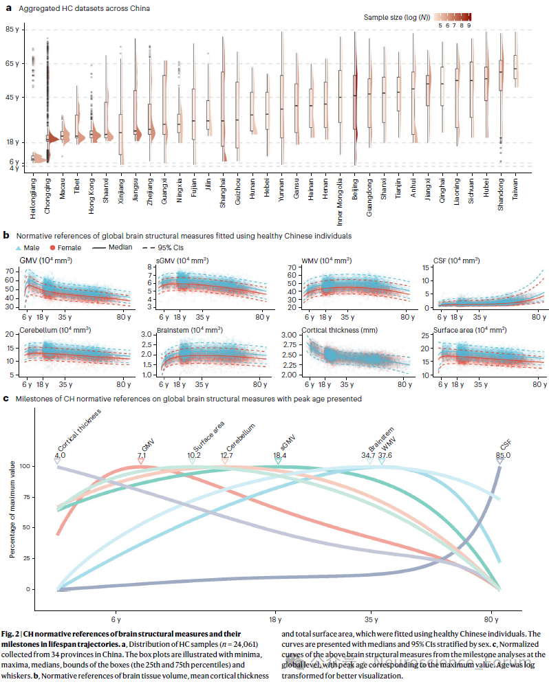 以前医生判断大脑是否健康,需要进行磁共振检查,这个检查结果用的是西方人群的参考标准。国人的遗传背景、生活环境同西方人差异很大,脑结构自然也不相同,这就可能导致诊断不准;而且,随着年龄增长,大脑会面临衰老,传统的检查很难分清这是正常老化还是疾病的早期信号,可能延误早诊早治的关键时期。长期以来,全球脑科学研究与临床评估所依赖的脑结构常模主要基于欧美人群数据。然而,越来越多的证据表明,不同人群因进化遗传、环境等因素,脑结构与发育轨迹存在差异。直接使用“欧美标准”来评估中国人群脑健康,可能导致偏差或误判。此项研究填补了这一关键空白。