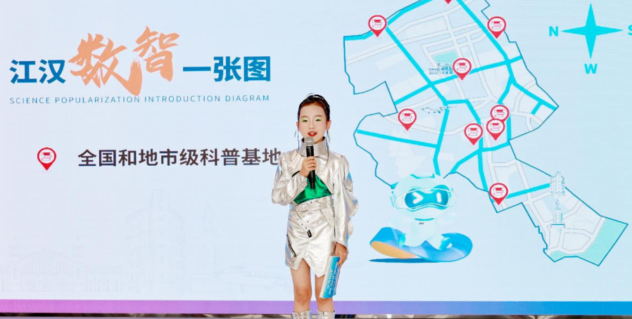 活动现场,“江汉数智科普一张图”的发布成为焦点。这张数字地图深度整合全区32个科普站点,以智能化方式串联起地质探索、应急安全、绿色低碳、校园科普和5G智慧体验等多元场景。多位“江小科”宣教大使代表轮番上台,带来丰富多样的科普宣讲。而涵盖全区32处优质“科普时空”的江汉“科普一张图”,背后有着清晰的架构支撑,即三大核心矩阵。