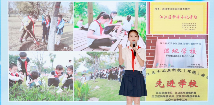第三大矩阵——“未来智能科普时空”,是江汉区以数字化为笔、智能化为墨勾勒的未来科普图景,交织出江汉科普向未来的希望。江汉区红领巾学校的易晴熙同学从青少年的视角出发,分享了校园自然课堂的精彩故事。她讲述了同学们观察湿地生态、制作生物图谱、设计智能垃圾分类装置的实践经历,展现出新时代青少年对科学的浓厚兴趣和创新精神。湖北移动的郑晶则通过5G技术在自动驾驶、远程医疗、全息通信等领域的实际应用案例,生动描绘了智慧城市的未来图景,让观众感受到科技创新对生活方式的深刻改变。