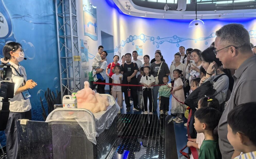 在水展厅,趣味实验小推车《气泡狂潮》正在上演气体与泡泡的神奇组合技。看似寻常的泡泡在掌心炸开绚烂火光,最后化作一场势不可挡的气泡狂潮!