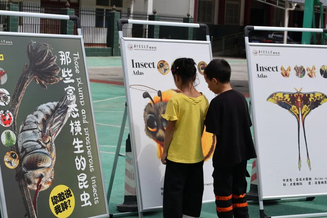 华中农业大学博物馆团队一行7人,不仅带来了精心准备的昆虫标本展览,还通过现场讲解、动手制作蝴蝶标本、开展动植物科普讲座等形式,让摩峰中心小学的孩子们近距离感受到自然的奇妙与科学的魅力。