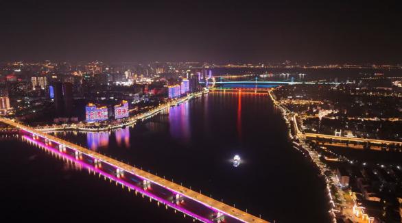 8月31日晚上,襄阳汉江夜景播放科普月灯光秀