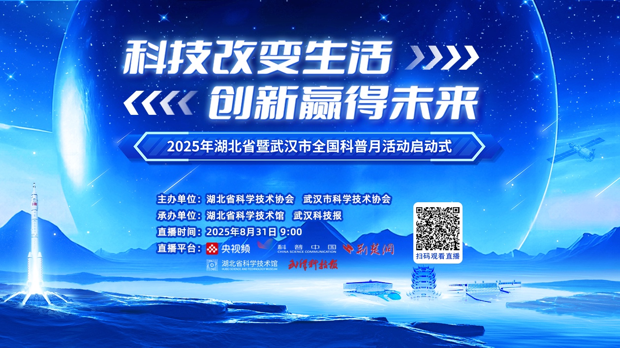 2025年,“全国科普日”正式升级为“全国科普月”,湖北首个全国科普月以“科技改变生活 创新赢得未来”为主题,8月31日将在湖北省科技馆举办启动式,央视频、科普中国、荆楚网、省科技馆网、武汉科技报等媒体平台将对启动式进行网络直播,湖北省科协官网和湖北科协官方微信同步进行转播。科普月期间,湖北省科协官网和湖北科协官方微信将同步推出“2025年湖北省全国科普月活动”大型网络宣传专题,对湖北省全国科普月活动进行深入宣传报道。